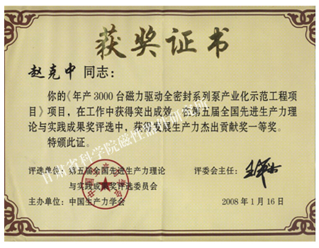 甘肅省科學技術進步獎證書